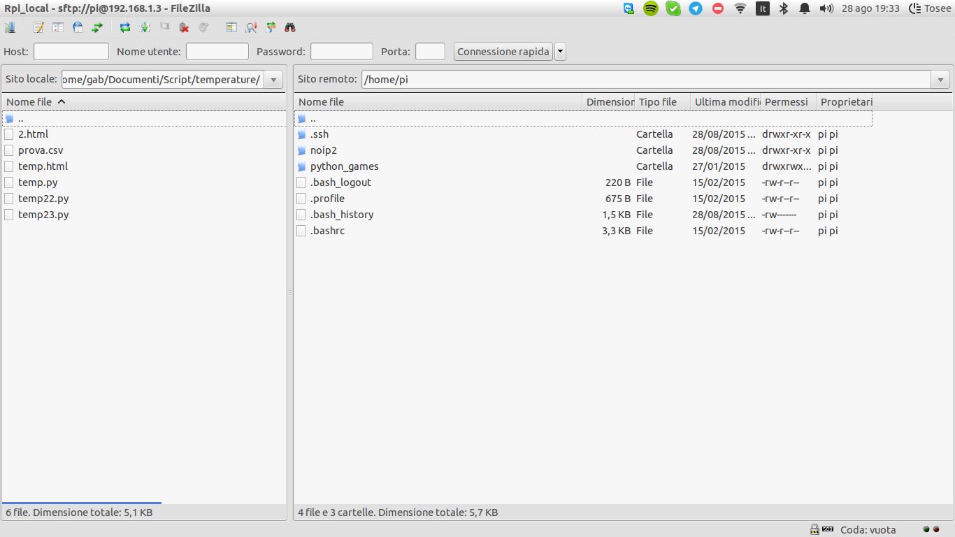 Apriamo e inseriamo username e password (user=pi password=decisaprima)