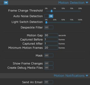 Per la rilevazione dei movimenti o luci il tab motion detection permetterà molte utili configurazioni da valutare in base alle proprie esigenze.